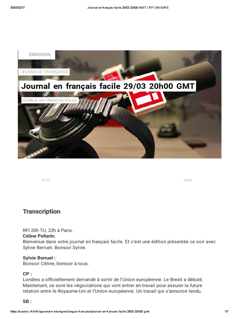Journal En Francais Facile 29 03 20h00 Gmt Rfi Savoirs J Ai