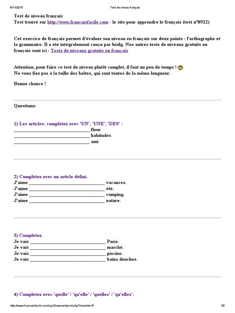 Test De Niveau Francais Sujet Grammaire Nombre Grammatical Essai Gratuit De 30 Jours Scribd