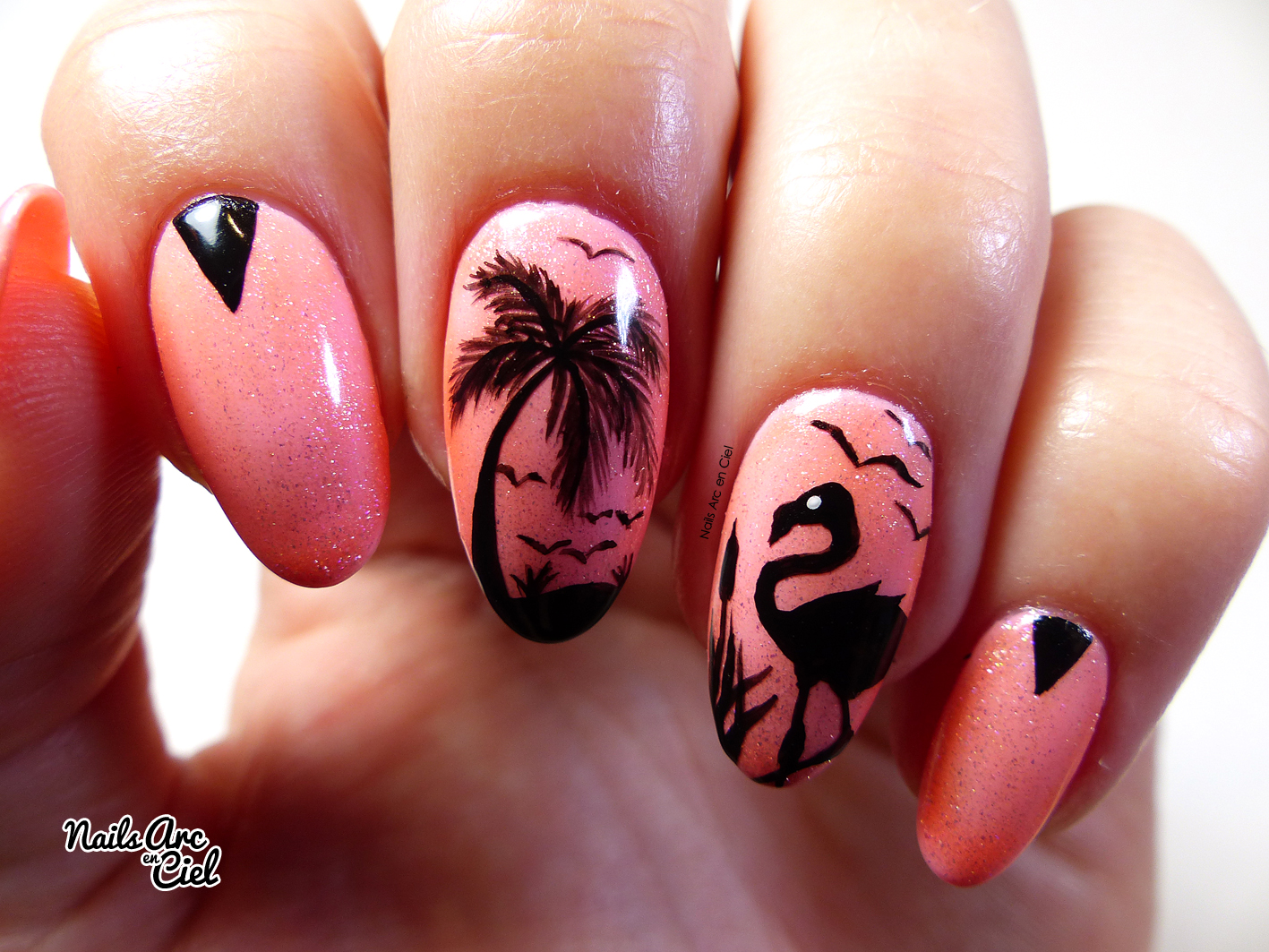 Nails Arc En Ciel Nail Art Tropical Silhouettes Flamant Et Palmiers